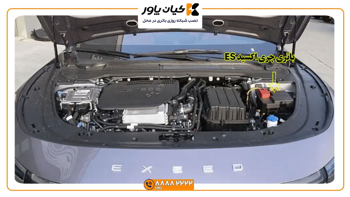 باتری خودروی چری اکسید ES، باتری 60 آمپری با پایه کوتاه و قالب L2 است. محل قرارگیری باتری، داخل محفظه موتور است.