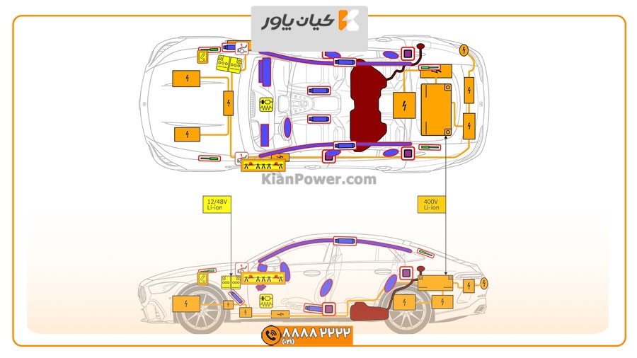 باتری بنز مرسدس بنز AMG 4door در قسمت پیشرانه خودرو (کاپوت جلو) قرار دارد.